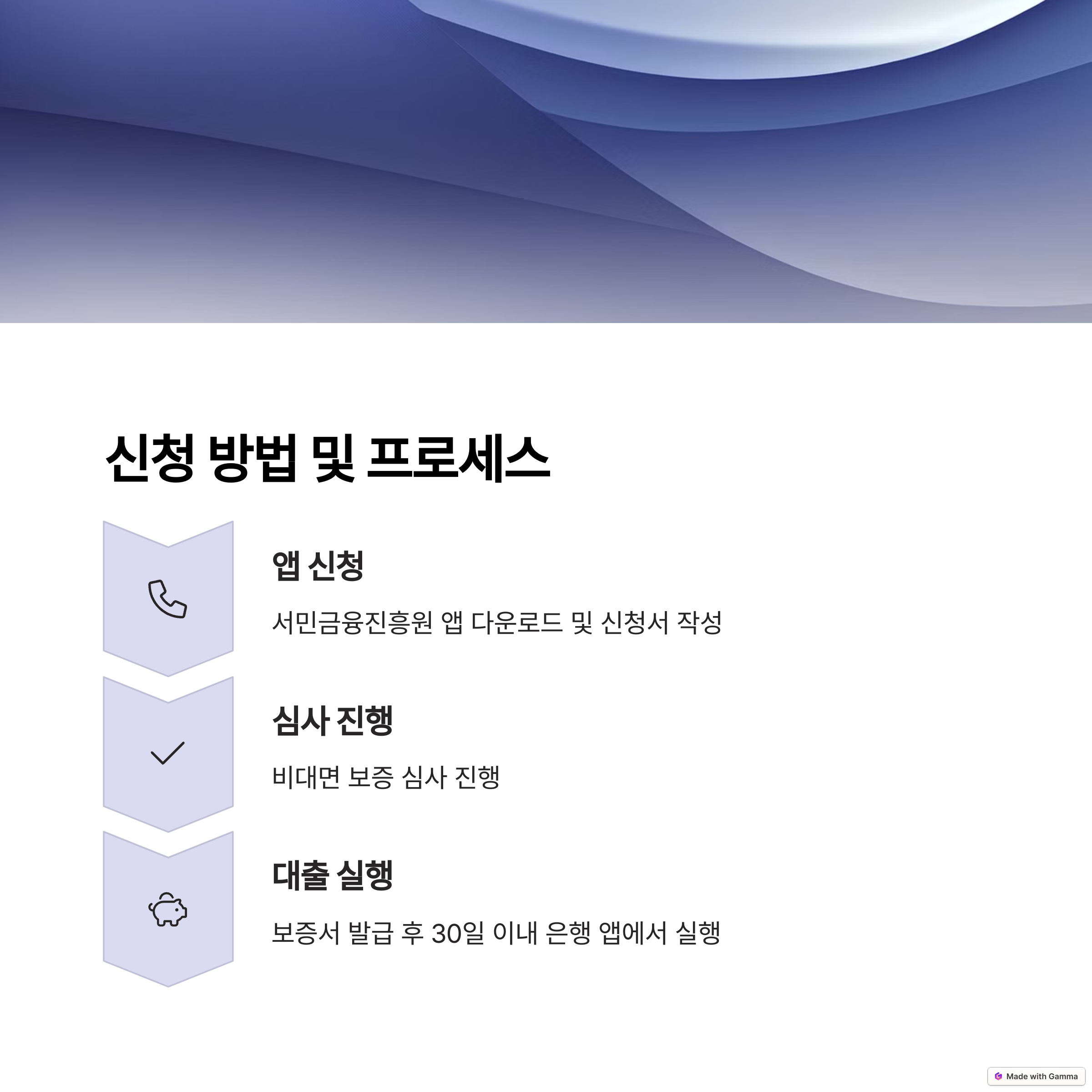 신청 방법 서민금융진흥원 앱 신청 → 비대면 심사 → 은행 앱 실행